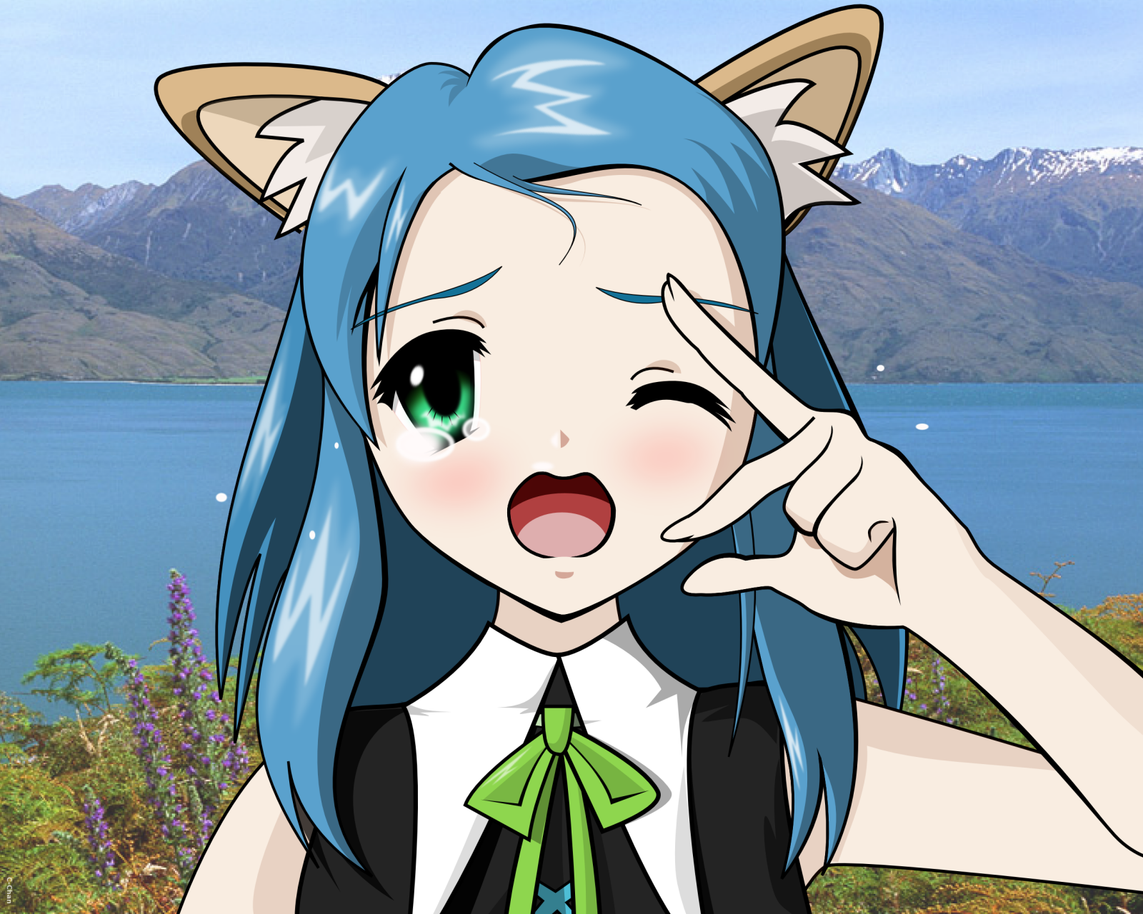 This is one of C-chan's old semi-collages featuring Mac OSX 10.1 Puma-tan posing as Mikuru Asahina (from The Melancholy of Haruhi Suzumiya) doing her trademark "Mikuru Beam". Or in this case, the"Puma-chan Beam".