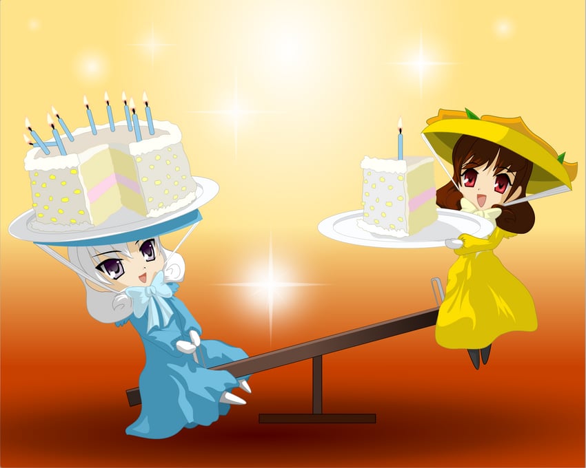 This is a repackaging of one of C-chan's later works, featuring chibified versions of FreeSBIE-tan and RoFreeSBIE-tan [originally created by Siya. As this was a quickly-drawn birthday present for Siya, the two girls are not in their standard attire but are instead cosplaying Siya's namesake characters Siya and Marc.